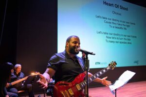Together with his band consisting of Benny Alwart, Michelle Samba, Gideon Tazelaar and Danny van Kessel, Orville performed at the international steel industry conference of Eurosteel on the 12th of September in front of 600 scientists and CEO’s from all over the globe. Especially for this occasion Orville performed his Heart Of Steel song, especially written for this occasion. Powered by Bouwen Met Staal.